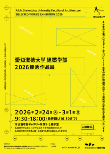 4年生の卒業プロジェクト・ならびに1年生〜3年生の設計課題作品のうち優秀作品各数点を、名古屋市民ギャラリー栄にて展示いたします。