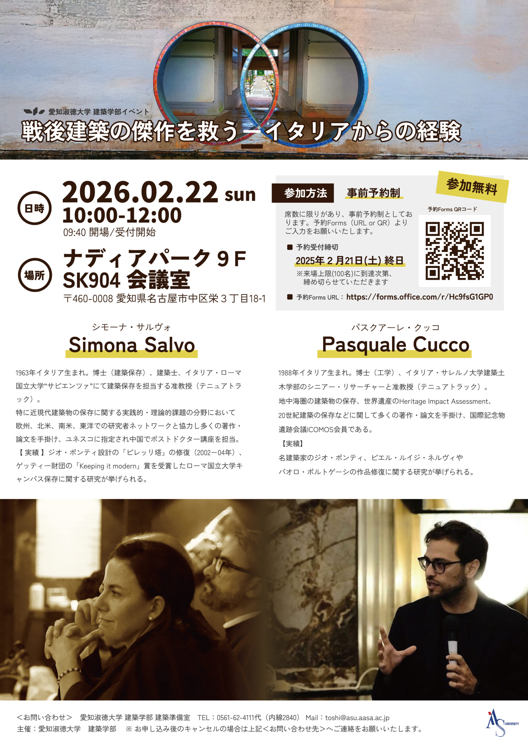 申し込み方法:2月21日までに、下記の申し込みフォームか愛知淑徳大学建築学部HPからお申し込みください(定員100名まで):https://forms.office.com/r/Hc9fsG1GP0