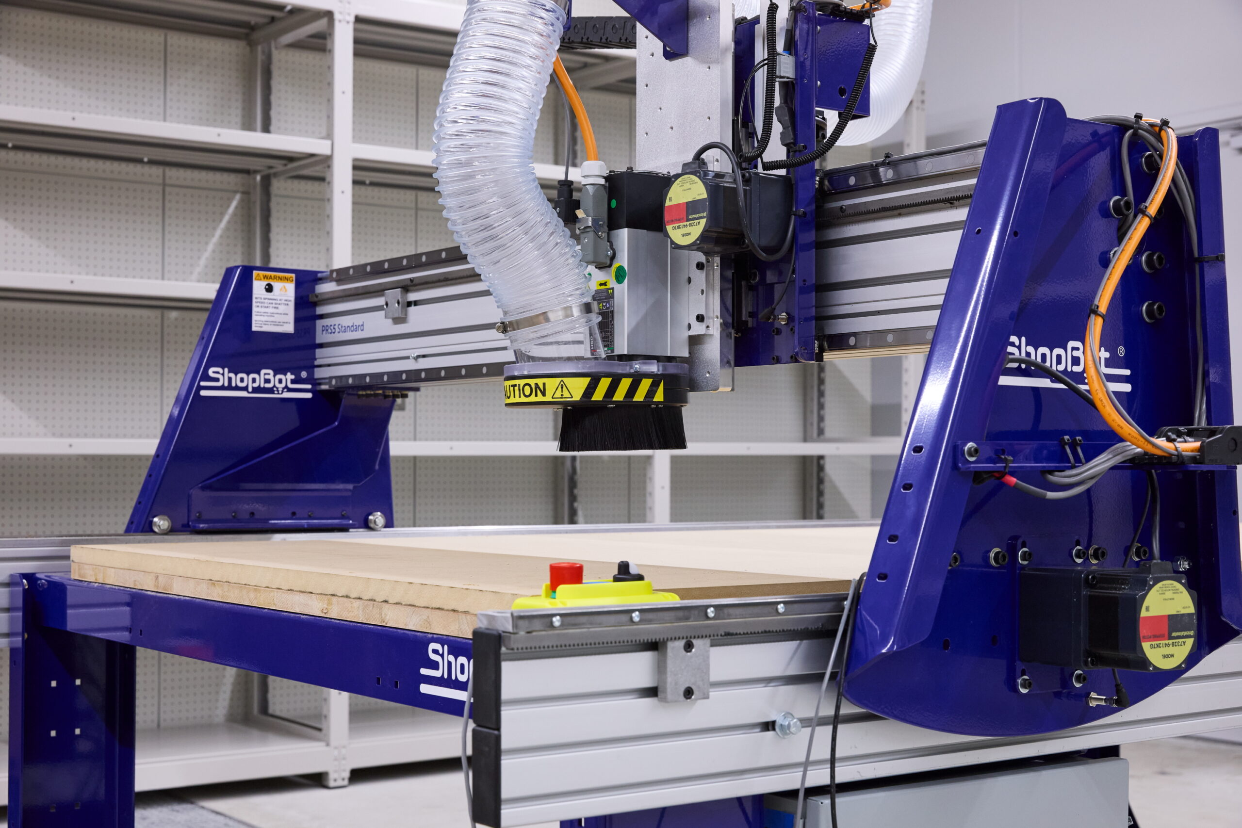 CNCルーターは、コンピューター制御で刃物を動かし、木材、樹脂、金属などの素材を高精度に立体加工できる機械です。複雑な形状や曲面も自動で切り出せるため、家具や空間の装飾部材など、様々なサイズや形状のモノを製作できます。